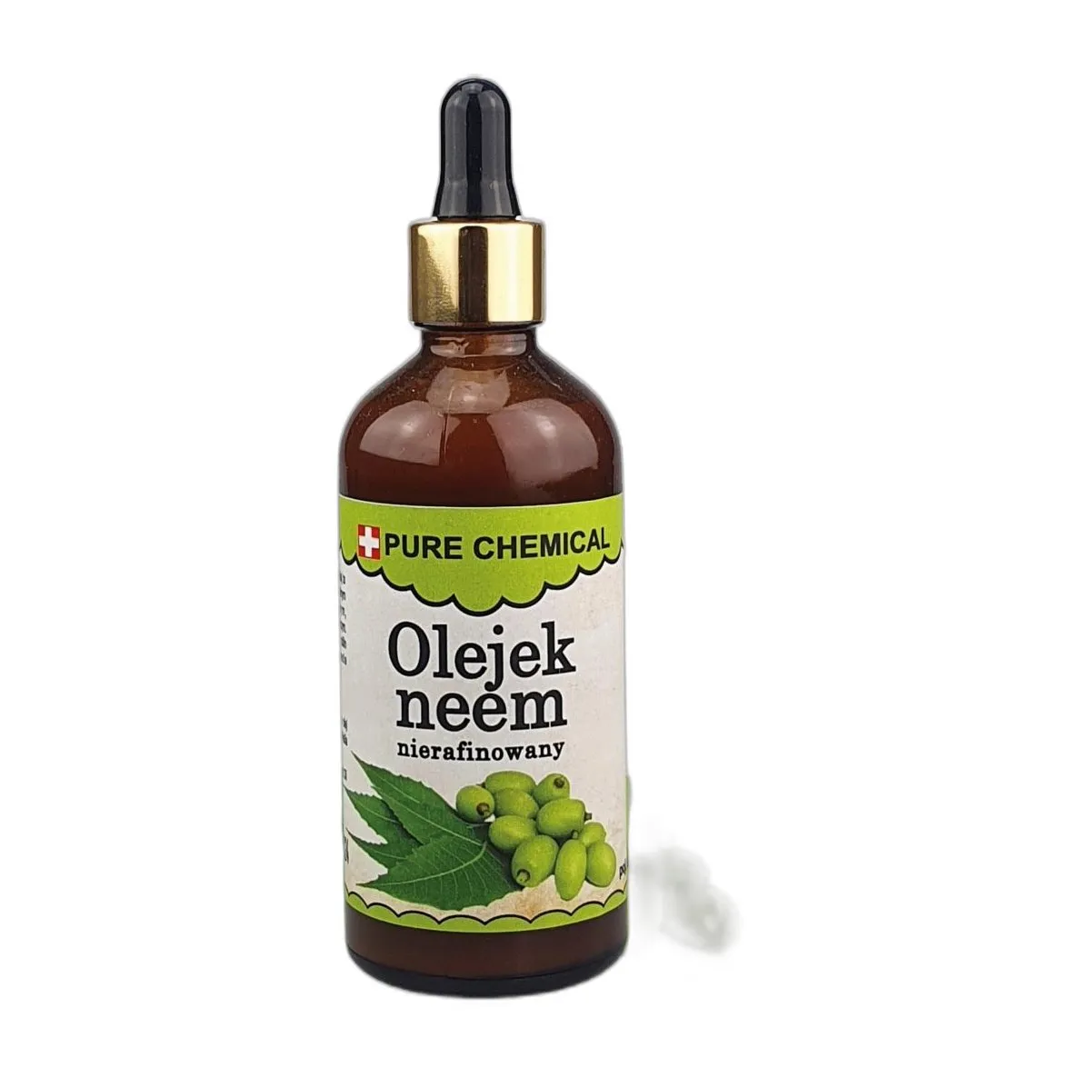Olej neem jest nierozpuszczalny w wodzie, ale dobrze miesza się z tłuszczami, alkoholami i rozpuszczalnikami organicznymi. Ma gęstą konsystencję, ciemnożółty kolor i charakterystyczny, intensywny zapach siarkowodoru. W temperaturze pokojowej pozostaje ciekły, ale przy niższych temperaturach może się częściowo krystalizować – to naturalne zjawisko. Czy wiesz, że jego zapach wynika z obecności siarkowych związków organicznych, które dodatkowo odstraszają szkodniki?