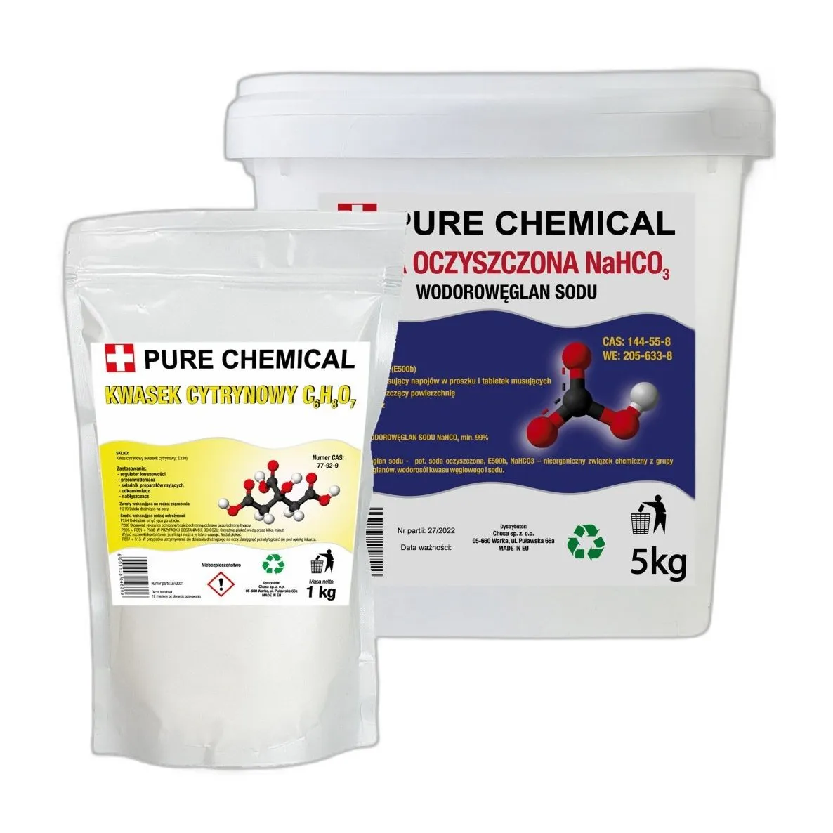 - Rozporządzenie CLP (WE) 1272/2008: Klasyfikacja substancji chemicznych – sода oczyszczona: H315, H319, H335; kwas cytrynowy: H319.