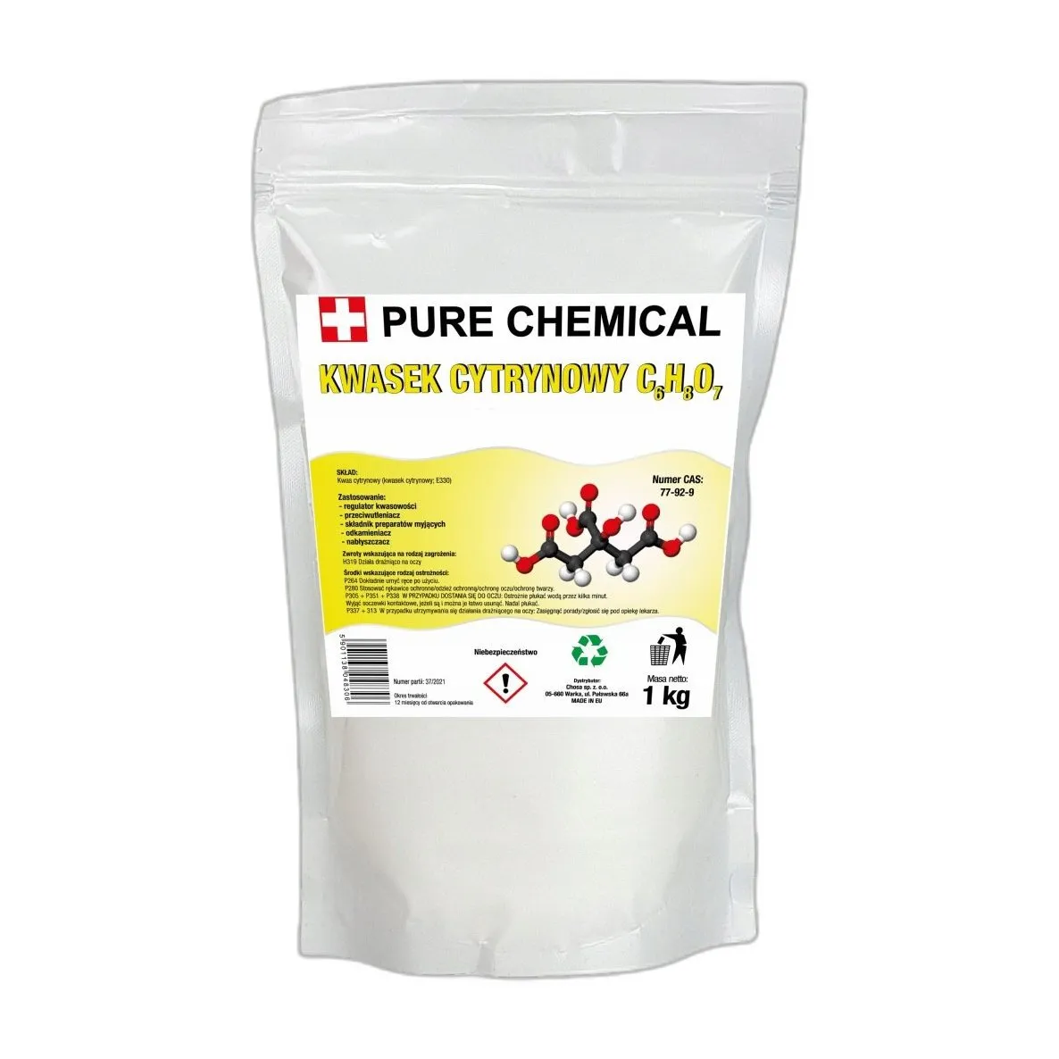 - Numer CAS: 497-19-8 (soda), 77-92-9 (kwas cytrynowy)
